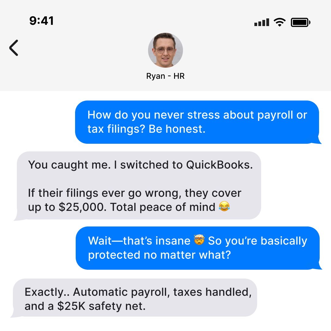 They’ve been using QuickBooks for Payroll & Tax Filing—and apparently, if QuickBooks makes a mistake with tax filings, they cover you up to $25,000 🤯